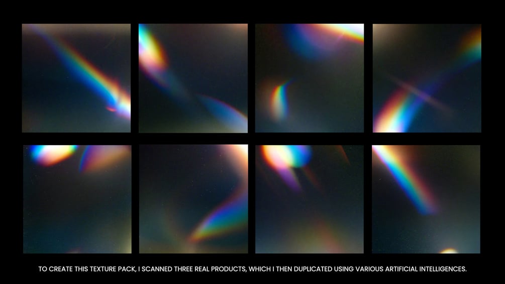 🇫🇷 Découvre mon nouveau pack de texture de grain, avec des fuites de lumière holographiques :